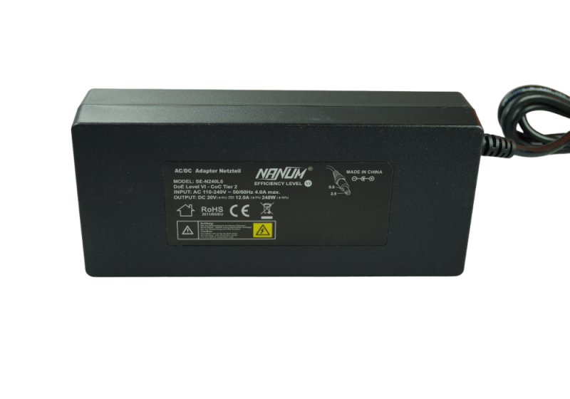 Nanum® 240 Watt externes Netzteil Adapter Level VI 20V 12A 2,5 mm DC Hohlstecker